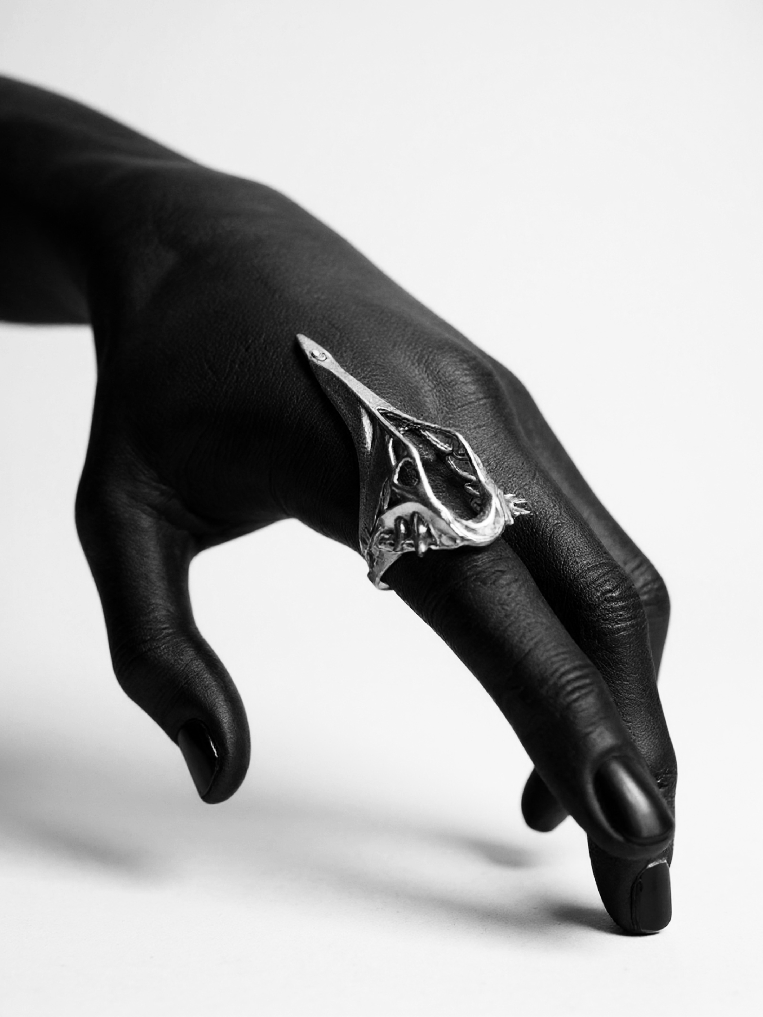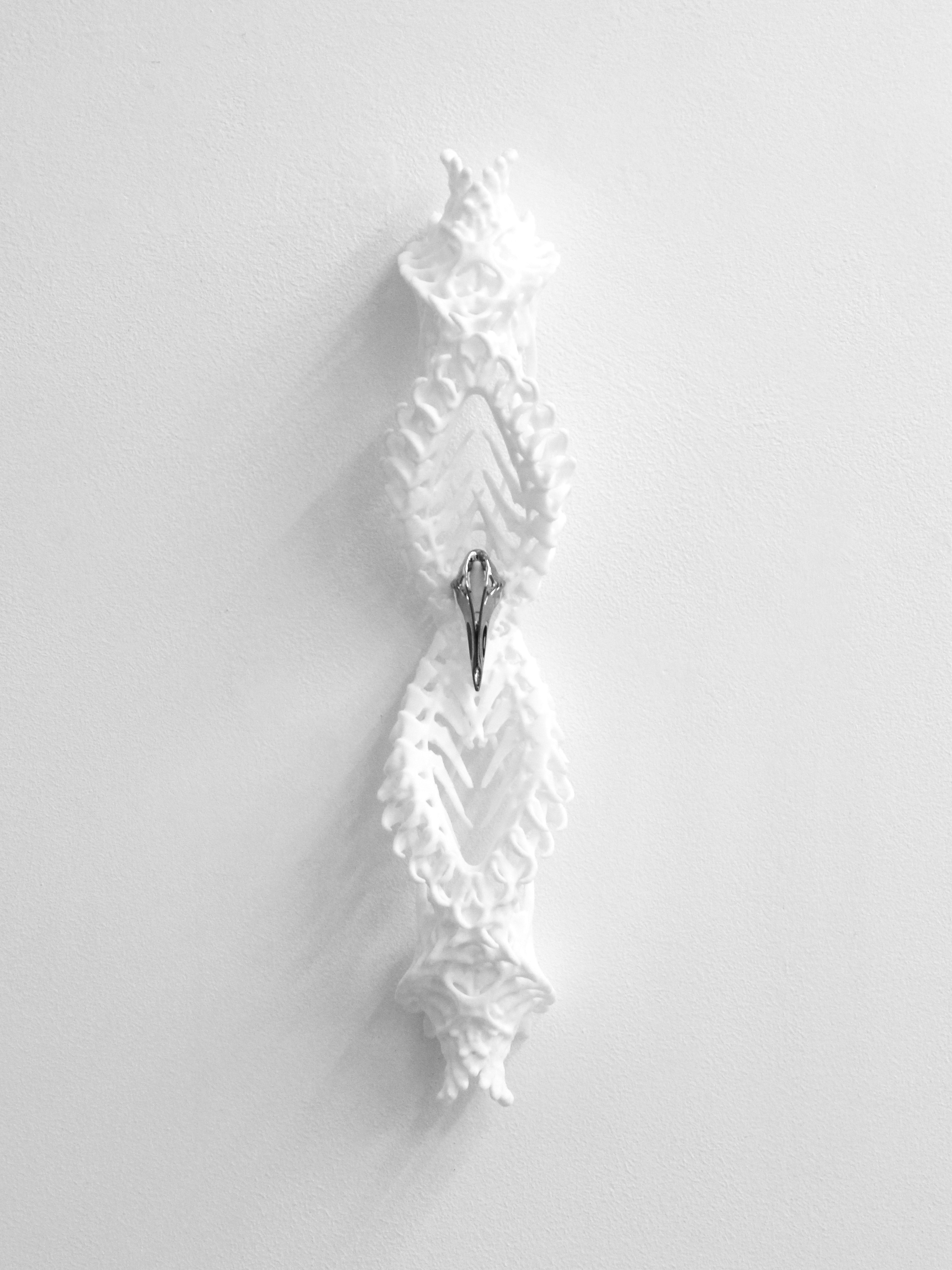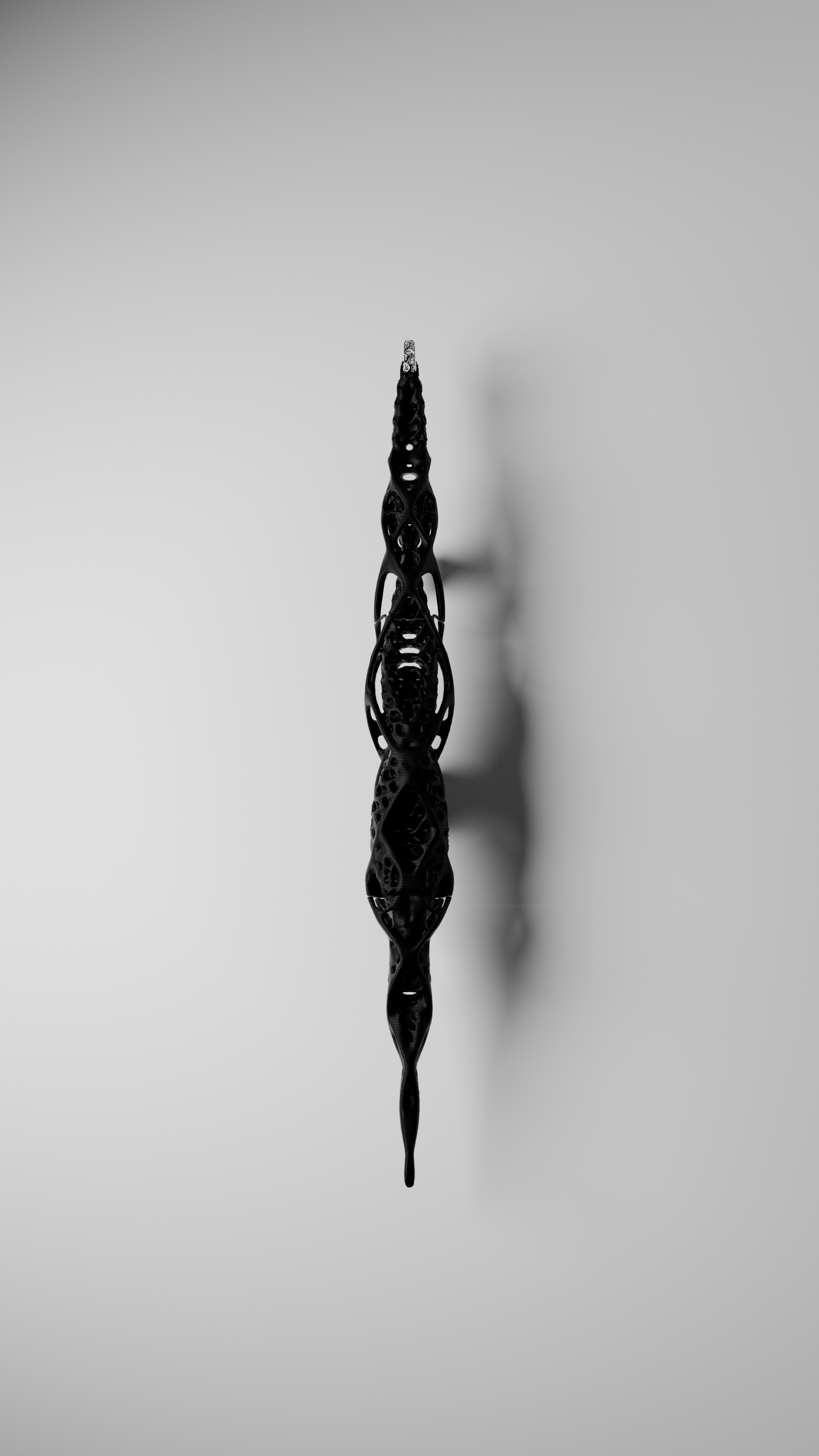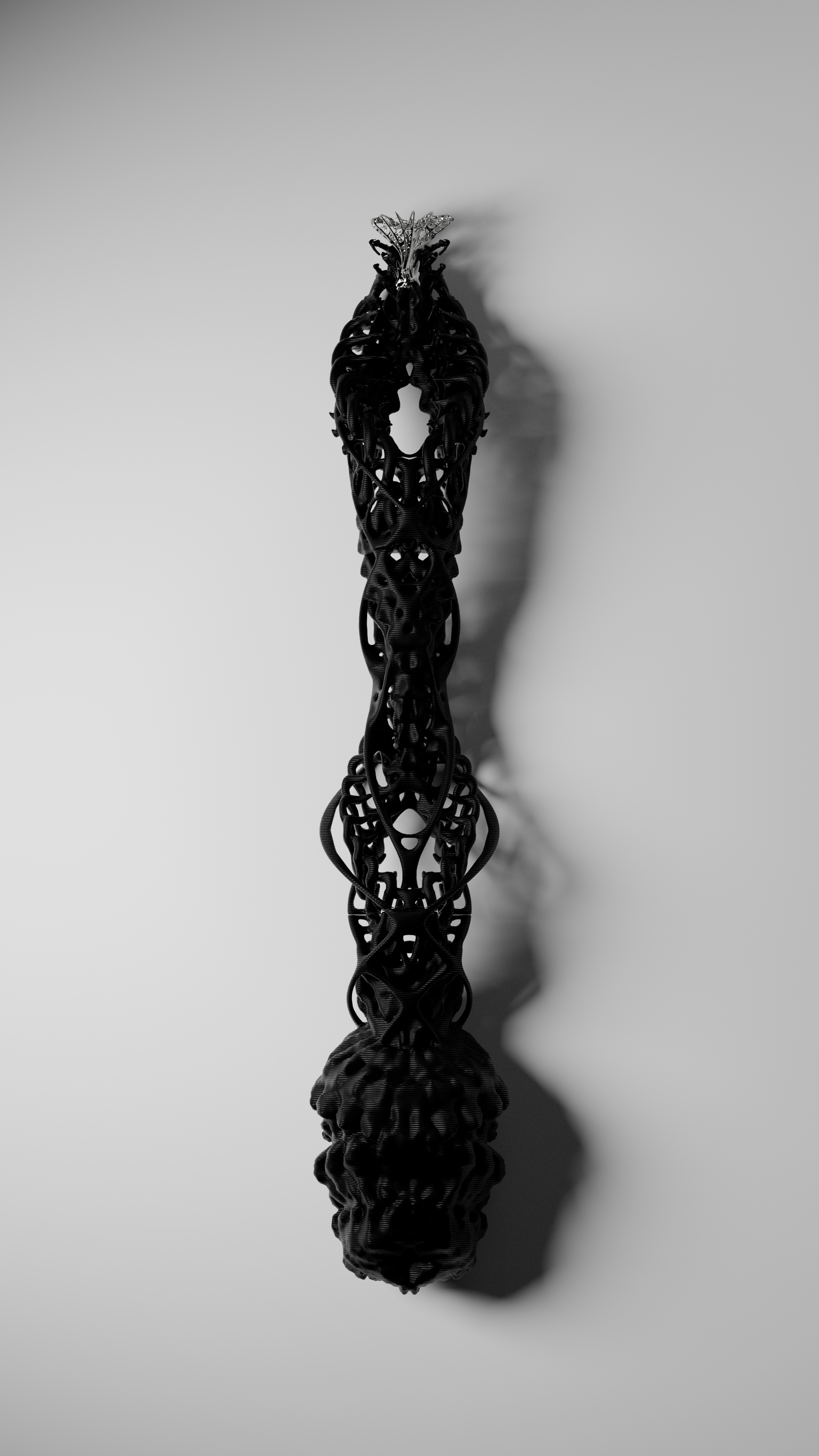 Through additive manufacturing processes and art-techne translations these digital forms take on physical life: evidence of a parallel evolution, a speculative ecosystem where nature is not only observed, but rewritten. These digital forms, made manifest, take root on the human body, shaping its physical architecture in ways foreign yet familiar.